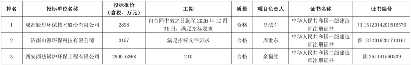 第三中标候选人:西安西热锅炉环保工程有限公司,投标报价:2900.6368万元。