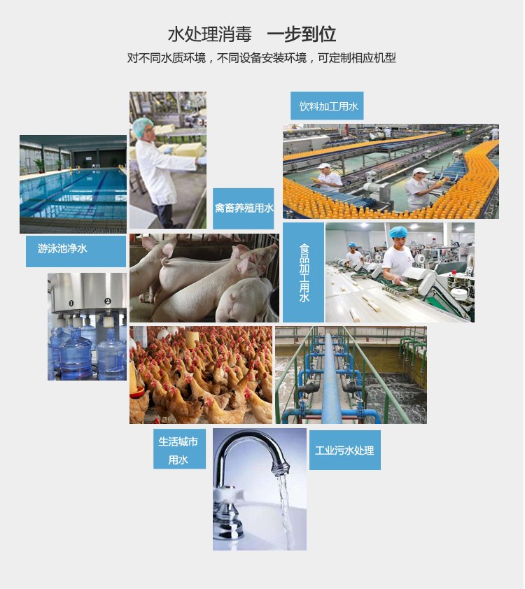 净水 医药用水 污废水 中回水 水厂 养殖用水 海水消毒设备 空气消毒设备等