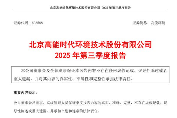 北京高能时代环境技术股份有限公司(简称:高能环境)近日发布《2025年第三季度报告》。前三季度,高能环境实现营收约101.6亿元,同比减少11.28%;归属于上市公司股东的净利润约6.46亿元,同比增加15.18%;基本每股收益0.424元,同比增加15.22%。其中,第三季度实现归母扣非净利润1.45亿元,同比增长177.01%。图...