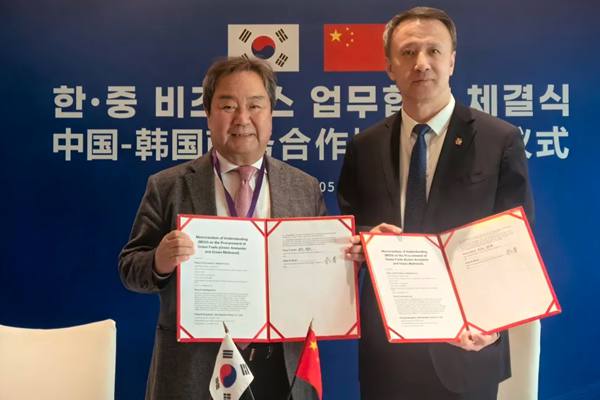 1月5日,在韩国高层访华期间举办的中国-韩国商务合作协议签署仪式上,吉电股份与韩国清洁能源企业代表正式签署《绿色燃料采购谅解备忘录》。韩国政府贸易投资促进机构中国区总代表黄在元见证签约。 韩国清洁能源企业代表重点介绍了企业宗旨、主营业务和发展方向,并表示,吉电股份在全球绿色氢基能源产业发展中已走在前列,将与吉电股份在绿色氢基能源重要...